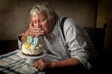 Ancien Pensionnaire Allumant Sa Cigarette Sur Son Gateau D Anniversaire Banque D Images Et Photos Libres De Droits Image